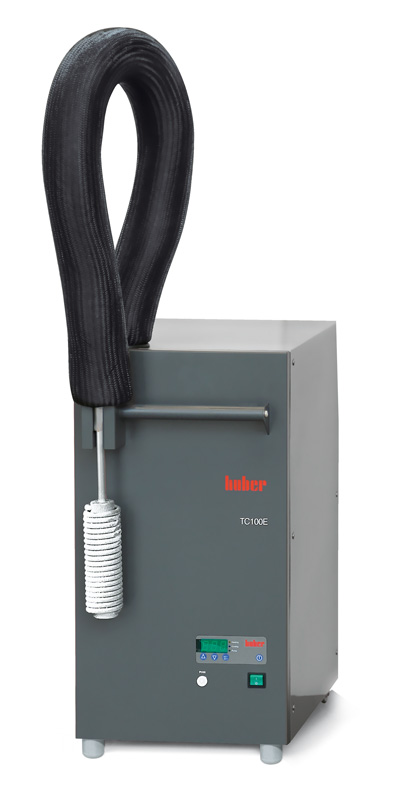 The TC range of immersion coolers are a flexible solution for a variaty of cooling tasks. The devices are simple and universally used for rapid cooling of fluids. Typical applications include counter-cooling for heat circulation thermostats or replacement of dry ice. For many applications immersion coolers are also an environmentally friendly alternative to mains water cooling. The TC immersion coolers are suitable for unsupervised use, for cooling tasks which require continuous cooling or as a variant with temperature control and a Pt100 probe. The models with the type affix "E“ have an LED display with entry of nominal values and regulate with a precision of ±0.5 K. A spiral-shaped or flexible immersion cooling probe made out of stainless steel is available for all models so that fluids can be cooled in virtually all vessel types. The compact housing is made from high quality stainless steel, and is fitted with carrying grips.